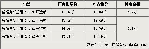 據(jù)長安福特經(jīng)銷商處銷售人員介紹,目前三廂新款福克斯全系現(xiàn)金優(yōu)惠最高1.2萬元。三廂新款福克斯分為1.8L和2.0L兩種排量,入門級車型的1.8L手動舒適版售價下降到了10.89萬元,高配的2.0L自動豪華版售價也降到了14.19萬元。