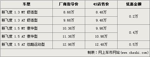 新飛度是廣州本田去年7月份上市的車型,其是廣州本田經(jīng)濟(jì)型轎車的主力軍,外形比起老款飛度更加前衛(wèi)更加時(shí)尚,創(chuàng)新的動(dòng)感另類駕駛艙更是一大亮點(diǎn)。近日據(jù)網(wǎng)上車市網(wǎng)站價(jià)格監(jiān)測(cè)系統(tǒng)顯示,新飛度全系最高優(yōu)惠金額為5000元,具體詳情請(qǐng)看下表: