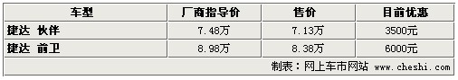 據(jù)4S店銷售人員介紹:目前捷達共有兩款車型,分為捷達伙伴和捷達前衛(wèi)。捷達伙伴目前優(yōu)惠3500元,捷達前衛(wèi)優(yōu)惠6000元。目前現(xiàn)車較為充足,但個別店內(nèi)現(xiàn)車顏色不全,如預定只需等待1周時間。在店內(nèi)做一條龍服務,還可獲贈價值1000元裝飾,包括地膠、腳墊、座套等。