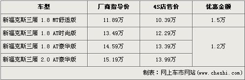 福克斯憑借出色的外觀設(shè)計(jì)及極佳的操控性贏得了市場(chǎng)的認(rèn)可,在銷量方面一直保持迅猛的勢(shì)頭。尤其新款?怂沟纳鲜校桓膬(nèi)飾略顯粗糙的詬病,使得?怂垢呌谕昝馈8?怂共捎昧宋譅栁諷40底盤(pán),將操控進(jìn)行到底,這一優(yōu)勢(shì)博得全世界的掌聲,名副其實(shí)成為了這個(gè)級(jí)別的標(biāo)桿車型。據(jù)網(wǎng)上車市價(jià)格系統(tǒng)檢測(cè)顯示,目前三廂?怂谷底罡邇(yōu)惠1.5萬(wàn)元,具體車型價(jià)格請(qǐng)看下表: