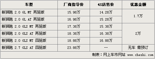 據(jù)東風(fēng)悅達(dá)起亞4S店銷(xiāo)售人員介紹,目前獅跑有1.7萬(wàn)元-2萬(wàn)元不等的優(yōu)惠,其中2.0兩驅(qū)最低售價(jià)14.28萬(wàn)元,現(xiàn)車(chē)目前顏色以黑色、銀色以及鈦銀色為主。部分車(chē)型顏色還是需要預(yù)訂,訂金為1萬(wàn)元,1個(gè)月內(nèi)可以提到車(chē)。如消費(fèi)者有意購(gòu)買(mǎi),到店詳談會(huì)有更優(yōu)惠的價(jià)格。北京地區(qū)各4S店由于訂單不同,各店銷(xiāo)售的現(xiàn)車(chē)顏色有所不同。