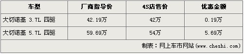 據(jù)經(jīng)銷商銷售人員介紹,大切諾基3.7L車型的優(yōu)惠金額僅為1900元,而高排量的5.7L車型優(yōu)惠金額達到了5.69萬元,達到了全系的最高。在售的Jeep-大切諾基共分為3.7L四驅和5.7L四驅兩個車型。3.7L四驅型經(jīng)1900元優(yōu)惠后,售價降為了42萬元。而排量稍大的5.7L四驅型經(jīng)5.69萬元優(yōu)惠后,售價降為了54萬元。