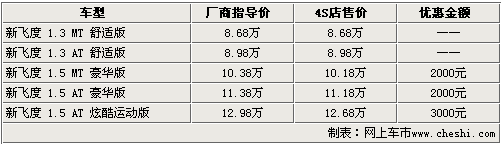 據(jù)廣汽本田4S店銷售人員介紹,飛度目前的優(yōu)惠一直保持在2000元-3000元,其中1.5運動版最高優(yōu)惠3000元,其他車型可優(yōu)惠現(xiàn)金2000元,F(xiàn)車方面1.3L現(xiàn)車較少,其它車型有現(xiàn)車供應,但部分型號顏色不全,仍需要預訂,訂金為1千元。