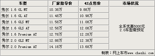 據(jù)東風(fēng)悅達(dá)起亞4S店銷售人員介紹:現(xiàn)在購(gòu)買起亞秀爾全系均可以得到5000元的現(xiàn)金優(yōu)惠。目前秀爾現(xiàn)車充足,顏色也比較齊全,現(xiàn)車顏色以白色、銀色、橙色、紅色為主。2.0車型需要預(yù)訂,需要繳納訂金5000元,一周左右可以提到現(xiàn)車。北京地區(qū)各4S店由于訂單不同,各店銷售的現(xiàn)車顏色有所不同,消費(fèi)者在購(gòu)買前可以多去幾家4S店。