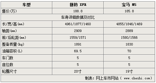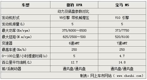 捷豹的新款轎跑車型-XFR上市后,為運動豪華車市場帶來全新的力量。成為09年備受矚目的高性能車型之一。作為兼顧跑車性能與轎車質感的豪華車型,捷豹XFR的價格定位也相當不菲,188.8萬的價格下也只有寶馬的M5可以堪稱勢均力敵的對手。下面我們就來看看兩款車到底誰更有魅力。