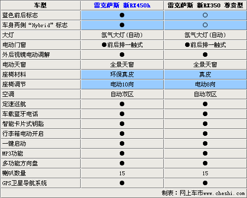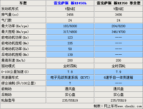 豐田汽車旗下的高端品牌——雷克薩斯在成功的向國(guó)內(nèi)引入全新SUV車型RX350后,又于4月20日正式引入了全新RX的混合動(dòng)力車型RX450h,售價(jià)95.4萬(wàn)元。為了能讓大家更好的了解這款車型,下面我們將吧全新RX350和RX450h放在一起,來看看這兩款車型在各個(gè)方面的特點(diǎn)與差別,希望能對(duì)您購(gòu)車有所幫助。