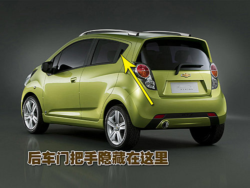 雪佛蘭Beat車型為一款五門(mén)掀背車型,該車的設(shè)計(jì)風(fēng)格在科魯茲車型上也有所體現(xiàn)。雖然為一款五門(mén)車型,但整體看上去其更像是一款三門(mén)版車型,這是因?yàn)樵撥嚨暮箝T(mén)門(mén)把手放置在C柱上,第一眼看上去很難分別出來(lái)。