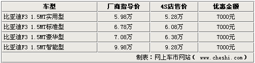 據(jù)比亞迪汽車4S店銷售人員介紹,目前比亞迪F3智能白金版只有實(shí)用型、標(biāo)準(zhǔn)型和豪華型有現(xiàn)車銷售,智能型和自動(dòng)擋車型都現(xiàn)車不足,暫時(shí)也不接收預(yù)訂,F(xiàn)在購(gòu)買比亞迪F3智能白金版可以有較大的優(yōu)惠幅度,其中標(biāo)準(zhǔn)型,豪華型可以優(yōu)惠7000元;智能型也可優(yōu)惠7000元,但需要預(yù)訂。該比亞迪4S店銷售人員表示,如果到店詳談,還可以有更多的優(yōu)惠幅度。