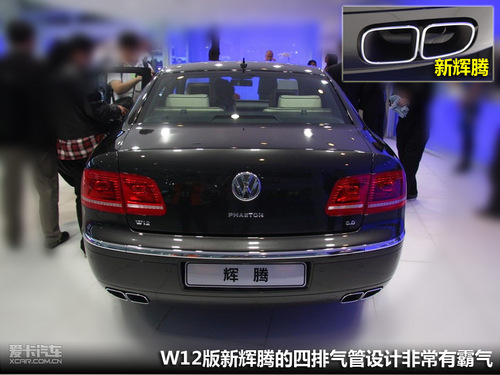 W12版新輝騰在車頭部與尾部都配備了探測雷達,配合自動車距調(diào)節(jié)系統(tǒng)(ACC)可以讓車輛與前車自動保持適當?shù)木嚯x。新輝騰的排氣管與后杠融為一體,W12版車型的四排氣管設(shè)計顯得比低調(diào)的老款車型霸氣許多。尾燈也做了適當?shù)男薷,改為了大眾統(tǒng)一風(fēng)格的LED燈組。