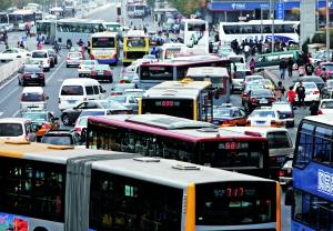 中關村海龍大廈前一路口由于混亂的交通產(chǎn)生擁堵。
