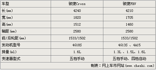 從與FRV的參數(shù)對(duì)比來(lái)看,駿捷Cross車型從長(zhǎng)、寬、高方面全面增大,而軸距依然是2580mm,在動(dòng)力上,駿捷Cross先期搭載的是4G18S 1.6L發(fā)動(dòng)機(jī),配合五速手動(dòng)變速器。后續(xù)也很可能推出1.3L、1.5L排量車型,新車預(yù)計(jì)售價(jià)將7-8萬(wàn)元之間。