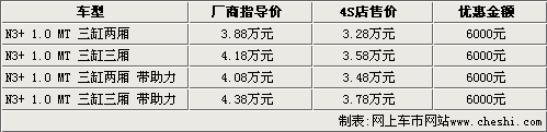據(jù)天津一汽夏利4S店銷售人員介紹,全新夏利N5有望在下個月上市,預(yù)計售價4.88-5.38萬元,目前沒有展車到店,所以仍然不接受這款新車的預(yù)訂。目前老款夏利N3現(xiàn)車比較齊全,而且全系車型都可以優(yōu)惠6000元,價格全線跌入三萬元區(qū)間。