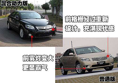 這款混合動力版凱美瑞的整體造型與普通版凱美瑞相同,但前臉部分設(shè)計變得更加前衛(wèi),猶如飛翔的翅膀;旌蟿恿P美瑞采用了圓形前霧燈,加大的設(shè)計不僅使整車顯得更為霸氣,而且更突出的前進(jìn)氣隔柵。
