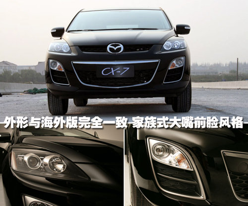 馬自達(dá)CX-7將于本月廣州車展正式上市,CX-7的引進(jìn)將彌補(bǔ)馬自達(dá)品牌在國(guó)內(nèi)沒(méi)有SUV車型的遺憾。近期此款車在國(guó)內(nèi)已經(jīng)開(kāi)始進(jìn)行廣告拍攝,我們得到了部分該車圖片,這也是最為清晰的一次實(shí)車照片。從圖片中來(lái)看,CX-7如前期報(bào)道的猜測(cè)一樣,車身外觀與海外改款車型一致。
