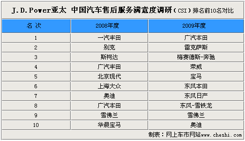 2009年中國(guó)汽車售后服務(wù)滿意度調(diào)研(CSI)