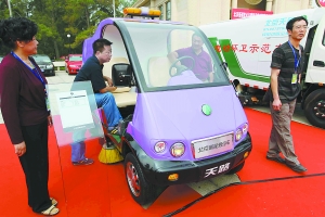 一踏上北京展覽館門(mén)前的小廣場(chǎng),參觀者便立刻被露天擺放在廣場(chǎng)上的各種新能源汽車吸引住了?雌饋(lái)似乎和普通垃圾車沒(méi)什么兩樣的桶裝垃圾運(yùn)輸車與壓縮式垃圾車,實(shí)際上卻是靠電池來(lái)運(yùn)行的;北汽的新能源汽車最高時(shí)速已經(jīng)可以達(dá)到每小時(shí)160公里;小型電動(dòng)汽車“竹風(fēng)”只需要30分鐘即可快速充電80%……