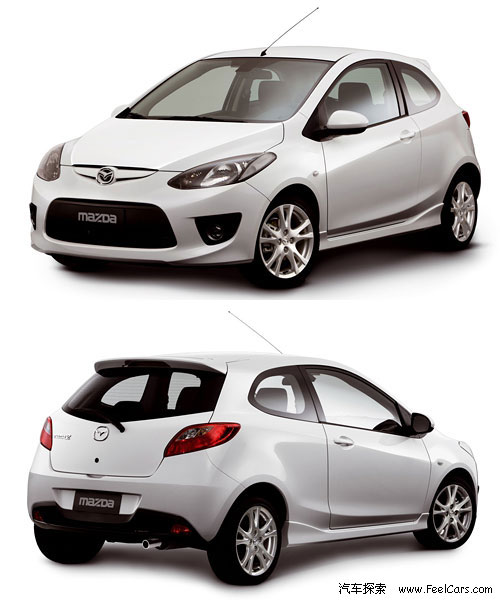 運(yùn)動版三門馬自達(dá)2的外觀,前臉造型和擾流尾翼有不同
