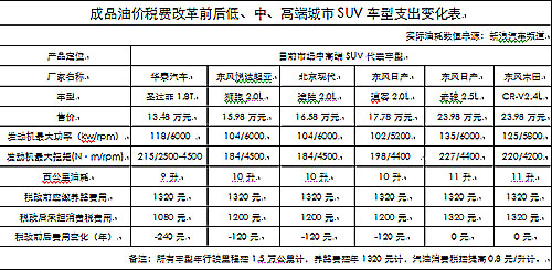 通過上面表格我們可以一目了然的看出,目前市場上中高端SUV在燃油稅開征后各家產(chǎn)品的成本花費。