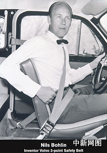 中新網(wǎng)1月16日電 2009年是三點式安全帶發(fā)明50周年,在汽車安全技術(shù)高度發(fā)達的今天,三點式安全帶仍然被認為是最有效的汽車安全保護措施之一。要保住生命是如此簡單,只需拉住安全帶扣,越過胸前,系上帶扣就可以了!如果您系上了安全帶,那么您在交通事故中幸免于難的機率就提高了50%。三點式安全帶不論現(xiàn)在還是將來都是汽車里最重要的一個安全細節(jié)。這一切都要感謝沃爾沃(Volvo)汽車的工程師尼爾斯•博林(Nils Bohlin),他于1959年發(fā)明了汽車三點式安全帶。世界上也許沒有第二個人能像他那樣挽救如此眾多的生命。