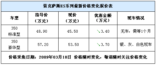 本周,編者聯(lián)系了上海和凌雷克薩斯4S店后了解到,現(xiàn)在該店雷克薩斯ES350有現(xiàn)車(chē)在售,可選車(chē)型僅為豪華型一款,現(xiàn)車(chē)有銀色,灰色和白色可選,標(biāo)準(zhǔn)款車(chē)型需提前1個(gè)月預(yù)定。價(jià)格方面,目前購(gòu)買(mǎi)ES350最高可優(yōu)惠3.7萬(wàn)元,店方還有部分禮品相贈(zèng),詳細(xì)價(jià)格信息請(qǐng)見(jiàn)下表: