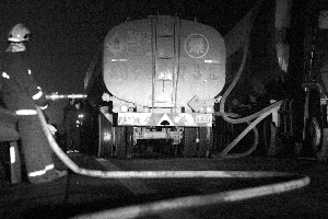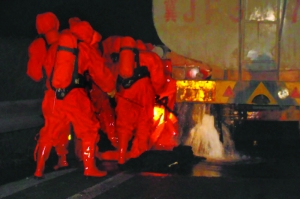 而泄漏口直徑約5厘米,破損的閥門很難修復(fù)。消防員找來樹枝,削成楔子才將閥門堵住。由于丙酮非常易燃,消防人員仍繼續(xù)用水龍對準(zhǔn)車身噴射稀釋。約一小時(shí)后,又用沙土掩埋路面液體,異味才消除。