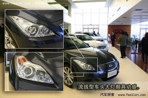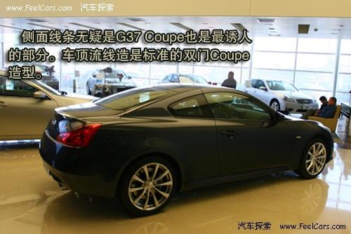 側(cè)面線條無(wú)疑是G37 Coupe與Saden車型區(qū)別最大,也是最誘人的部分。車頂流線造是標(biāo)準(zhǔn)的雙門Coupe造型,腰線直接延成為行李箱蓋并于面積巨大的尾燈連成一體。短小的后和行李箱形成刀切般的簡(jiǎn)潔線條。