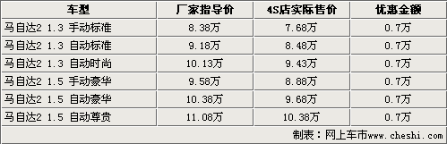 據(jù)長(zhǎng)安馬自達(dá)銷售人員表示,購(gòu)買(mǎi)馬自達(dá)2車型除了可以得到7000元現(xiàn)金優(yōu)惠外,還可以得到廠家贈(zèng)送價(jià)值千元的原廠汽車裝飾。目前馬自達(dá)2兩廂車型的貨源比較緊張,部分車型需要提前預(yù)訂,訂貨周期一般在7-15個(gè)工作日左右。由于小排量車型的購(gòu)置稅下調(diào),整體購(gòu)車價(jià)將會(huì)下調(diào)3-4千元左右,在加上目前的現(xiàn)金優(yōu)惠,消費(fèi)者目前購(gòu)車還是比較劃算的。