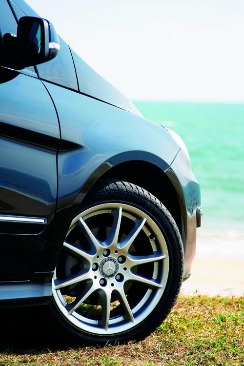 車身形式是典型的小MPV,所以它比S級(jí)有著更親民的外表。官方宣稱其為豪華運(yùn)動(dòng)旅行車,其實(shí)除了格柵正中的大標(biāo)在赫然表露身份以外,它的周身設(shè)計(jì)都十分的低調(diào)。而展現(xiàn)運(yùn)動(dòng)氣質(zhì)的外部特征,在我看來僅在于上揚(yáng)的腰線和17寸的多輻輪轂。其實(shí)這種平易近人的樸實(shí)形象更適合家庭用戶的需要。