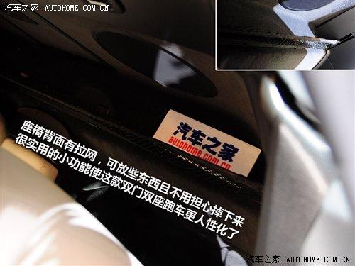 新款終于在扶手箱里將杯架的問題解決了,雖說在扶手箱里也并非完美的解決方案,但終究是比根本沒有強(qiáng)出很多了。畢竟開跑車的人也是要喝水的嘛;仡^看看兩個座椅后面的隱藏式儲物格,原來放CD機(jī)那一層去掉了,現(xiàn)在三層都是儲物格,隨身的雜物都可以放在這里。那個可以開關(guān)的小門有絨面包裹著,檔次感是相當(dāng)?shù)某渥恪?/p>