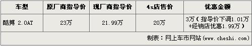 根據(jù)4s店銷售人員介紹,目前官方對酷博 2.0 AT版車型的廠商指導價下調(diào)了1.01萬元,下調(diào)后廠商指導價從23萬元降到了21.99萬元,并且在店內(nèi)購車的消費者還可以得到經(jīng)銷店送出的1.99萬元的優(yōu)惠。經(jīng)總優(yōu)惠后,道奇酷博的售價降到了20萬。現(xiàn)車方面,店內(nèi)酷搏現(xiàn)車不多,錯過的消費者只能交1萬元訂金,下個月才可提車。
