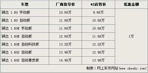 據(jù)東風(fēng)日產(chǎn)4s店銷售人員介紹,目前東風(fēng)日產(chǎn)騏達(dá)全系優(yōu)惠1萬元。經(jīng)優(yōu)惠優(yōu)惠后,入門級的1.6G手動(dòng)版售價(jià)下降到了9.68萬元,而全系最高配的1.6 GS自動(dòng)尊貴版售價(jià)也降到了13.98萬元,跌破了14萬元。銷售人員還介紹,目前店內(nèi)沒有騏達(dá)現(xiàn)車,欲購買者需交2000元訂金約等兩個(gè)月時(shí)間。