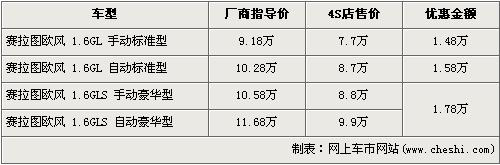 據(jù)經(jīng)銷商處銷售人員介紹,賽拉圖歐風(fēng)全系最高出現(xiàn)1.78萬元的優(yōu)惠。賽拉圖歐風(fēng)在售的有4個(gè)車型,入門級的1.6L手動(dòng)標(biāo)準(zhǔn)版的優(yōu)惠金額上漲到了1.48萬元,售價(jià)從廠商指導(dǎo)價(jià)9.18萬元降到7.7萬元,1.6L豪華版的手動(dòng)版和自動(dòng)版車型都經(jīng)全系最高1.78萬元優(yōu)惠后,售價(jià)分別降至8.8萬元和9.9萬元。銷售人員還介紹,目前賽拉圖歐風(fēng)車型比較緊張,現(xiàn)車數(shù)量一般。
