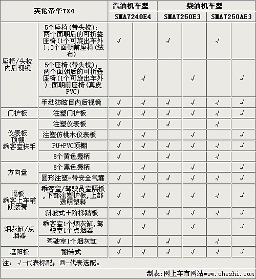 英倫TX4全系車型只配備手動(dòng)空調(diào),駕駛席和乘客席都配備照明燈,全系配備CD和收音機(jī),而且乘客室可以選裝獨(dú)立音響控制。TX4的高配車型可以選裝MP3、GPS系統(tǒng)和倒車?yán)走_(dá)。另外,這款車型的乘客室和駕駛席都配備了通訊設(shè)施,實(shí)用性更強(qiáng)。