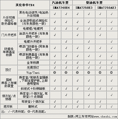 英倫TX4全系車型都配備了黑色電動(dòng)調(diào)節(jié)外后視鏡,并帶有電加熱功能,高配車型配備了電鍍外門把手。TX4可以選裝VIP或者TAXI頂燈,保險(xiǎn)杠防擦條和車牌基座都與車身顏色一致。另外,這款車的乘客室單獨(dú)配備有煙灰缸和點(diǎn)煙器。