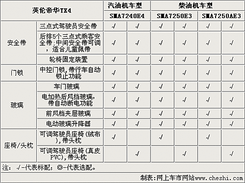 英倫TX4的后排帶有五個(gè)三點(diǎn)式安全帶,并且后排還帶有輪椅固定裝置。TX4配備了中控門鎖,帶行車自動(dòng)鎖止功能,后風(fēng)擋玻璃也可以加熱,并且?guī)в凶詣?dòng)斷電功能。TX4的高配車型都配備了真皮座椅,低配車型采用絨布材料座椅。