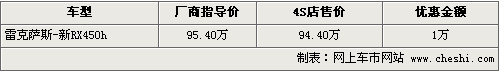 據(jù)雷克薩斯4S店銷售人員表示,剛剛上市的RX450h的貨源相對比較緊張,所以優(yōu)惠幅度也是最少的,只有1萬元。個(gè)別款色需要消費(fèi)者提前預(yù)訂才行。
