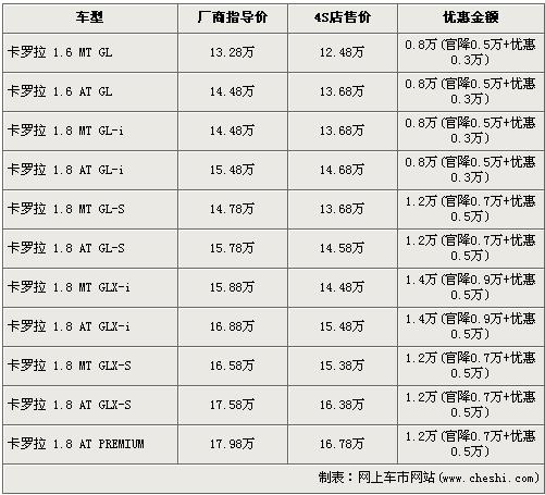 據(jù)4S銷售人員介紹,前段時間官方對卡羅拉全系調(diào)整了售價,最高官方降價達(dá)到了9000元,并且近期在店內(nèi)購買卡羅拉的消費(fèi)者還可以得到最高5000元的優(yōu)惠,累計全系最高讓利達(dá)到了1.4萬元。經(jīng)優(yōu)惠后,全系入門級的1.6 MT GL版車型售價降到了12.48萬元。