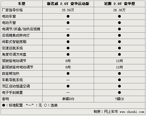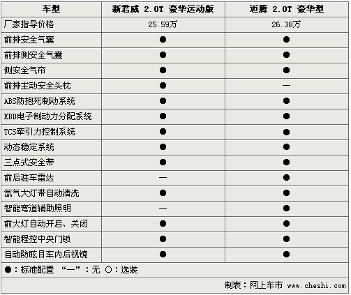 在豪華配置方面,新君威2.0T和邁騰2.0T更是不遺余力的配備各自高端配置,電動天窗、定速巡航、電動座椅、座椅電加熱以及分區(qū)自動空調(diào)均稱為兩款車的標準配置。但新君威2.0T配備的電磁隨速轉(zhuǎn)向系統(tǒng),讓其整體的操控性略高于邁騰2.0T。此外,邁騰2.0T配備的電子手剎、12向電動真皮坐椅和電動折疊后視鏡等配置,似乎要比新君威2.0T更加時尚。
