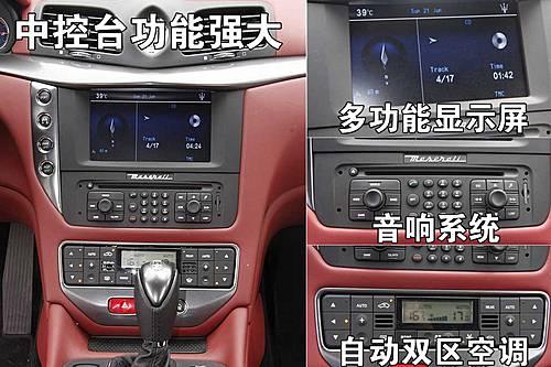 瑪莎拉蒂GranTurismo的中控臺功能很豐富,DVD中央顯示屏、bose音響系統(tǒng)、自動雙區(qū)空調(diào),為您締造一個舒適乘坐空間。