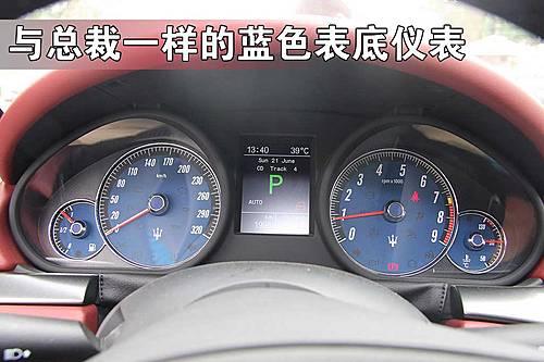 與總裁一樣瑪莎拉蒂GranTurismo的儀表盤采用的是藍(lán)色表底,白色數(shù)字非常的清晰,中央的信息顯示屏很實用,而320Km/h時刻提醒你它的能力有多大。