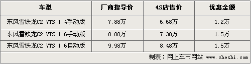 C2作為東風(fēng)雪鐵龍旗下的主力A級(jí)兩廂車型,憑借時(shí)尚的外觀和出色的動(dòng)力性能贏得了廣大消費(fèi)者的認(rèn)可。但隨著眾多競(jìng)爭(zhēng)車型的上市銷售,C2的銷量也沒有得到明顯的改善,進(jìn)而在價(jià)格方面的優(yōu)惠有了一定幅度的放松。目前C2全系車型最高可優(yōu)惠1.5萬元,具體行情如下: