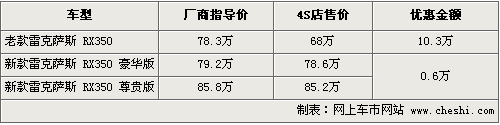 筆者從雷克薩斯經(jīng)銷商處了解,目前雷克薩斯有數(shù)量不多的老款車型甩賣,目前最低僅售68萬元,只有銀色款有現(xiàn)車供應(yīng),優(yōu)惠幅度也達(dá)到了10.3萬元。同時(shí)銷售的新款車型售價(jià)分別為79.2萬和85.8萬元,目前優(yōu)惠幅度非常小,僅有0.6萬元。新款車型也有少量現(xiàn)車供應(yīng),具體詳情消費(fèi)者可以到店咨詢。