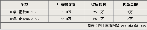 據(jù)4S店銷售人員介紹,目前老款的謳歌RL還有部分車型在售,原來廠商指導(dǎo)價(jià)格為68萬(wàn)元,現(xiàn)在優(yōu)惠現(xiàn)金3萬(wàn)元,而09款RL現(xiàn)金直降達(dá)到了7萬(wàn)元,優(yōu)惠后售價(jià)為75萬(wàn)。現(xiàn)車方面有黑色、炭灰色外觀,其他顏色還需要進(jìn)一步預(yù)訂。