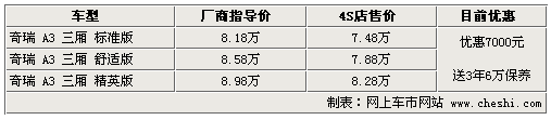 奇瑞A3——現(xiàn)車優(yōu)惠7000元,送3年6萬(wàn)公里保養(yǎng)