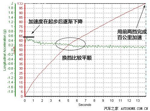 這加速測試中,新款SX4起步時對車身姿態(tài)控制不錯,1.6L AT運動型的百公里加速最好成績?yōu)?3.5秒,比老款車型的14秒略有提升。不過從絕對數(shù)值上看,13.5秒仍是一段比較“漫長”的時間。
