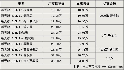 據(jù)4S店銷售人員介紹,目前消費(fèi)者購買新天籟2.0和2.5排量車型分別贈(zèng)送價(jià)值8000元左右的全車保險(xiǎn),除此之外,現(xiàn)車現(xiàn)金優(yōu)惠從9000元-3.5萬元不等。其中2.0排量現(xiàn)車優(yōu)惠9000元,優(yōu)惠后最低僅售18.38萬,2.5L低配版優(yōu)惠1萬,高端導(dǎo)航版優(yōu)惠1.4萬,3.5排量則最高達(dá)到了3.5萬現(xiàn)金優(yōu)惠。目前2.0L和2.5L排量車型有黑色、白色、紫色等現(xiàn)車供應(yīng),但數(shù)量有限,部分車型還需要預(yù)訂。