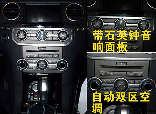 發(fā)現(xiàn)4既然是來(lái)自英國(guó)的品牌,雖為越野車但英倫的品味不能丟,眾多英國(guó)車所標(biāo)配的石英表,它自然不會(huì)忽略,小的石英表被鑲嵌在音響面板中,整體美觀中不失高雅,當(dāng)然雙區(qū)自動(dòng)空調(diào)自然是標(biāo)準(zhǔn)配置。