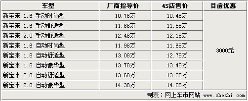 據4S店銷售人員介紹:目前大眾新寶來全系可優(yōu)惠3000元。目前新寶來全系現車較充足,顏色也比較齊全。如需預定車輛需等待2周至一個月時間,訂車周期較短,如著急用車的朋友請安排好用車時間。車價方面,新寶來在優(yōu)惠3000外,個別經銷商還可送一些簡單裝飾,主要是腳墊等。