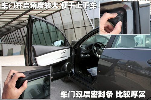 作為一款定為于中高級(jí)轎車(chē)的馬自達(dá)睿翼,車(chē)門(mén)在完全打開(kāi)的情況下開(kāi)啟角度適中,駕乘人員上下車(chē)輛比較方便。在車(chē)門(mén)四周裝有厚實(shí)且質(zhì)地柔軟的密封條,能夠起到很好的密封隔音作用。