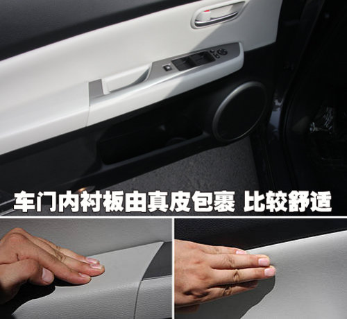 車(chē)門(mén)內(nèi)襯板由真皮包覆,材質(zhì)比較柔軟,駕車(chē)時(shí)或長(zhǎng)途駕駛,喜歡把胳膊放在車(chē)門(mén)邊的朋友都會(huì)感到比較舒適。